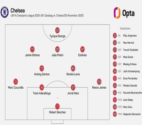 切尔西即将在欧冠联赛阶段第4轮客场挑战卡拉巴赫,目前他们已经公布了球队的首发阵容。切尔西在本场比赛中排...
