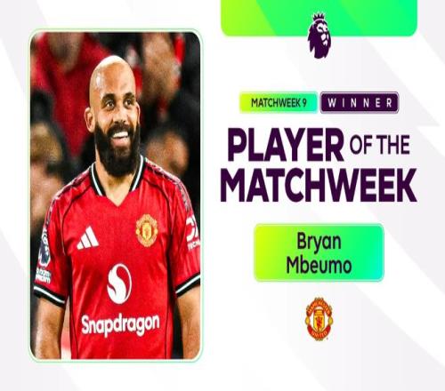 英超官方:姆伯莫当选第9轮最佳,曼联球员连续两周获此殊荣
