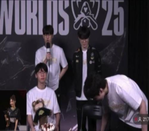 电竞体育11月9报道 采访只准备了两把椅子!Keria中途离开,Faker终于能坐下了。