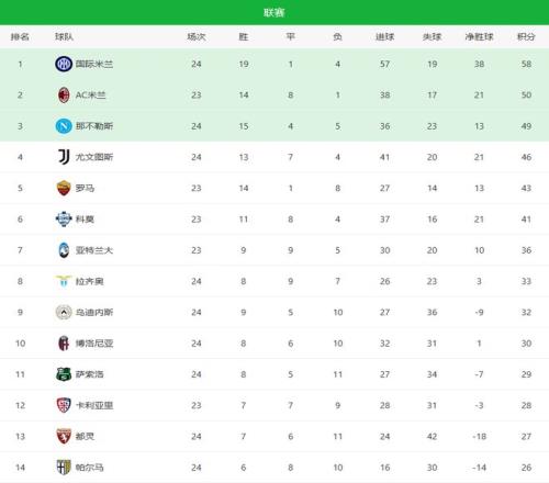 随着国米50+尤文22!意甲最新积分榜米兰距榜首8分35名差7分