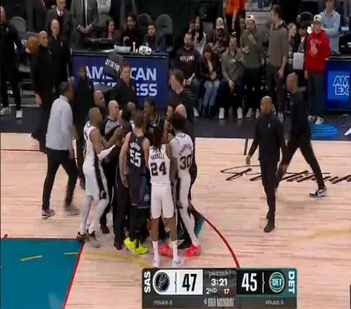 次节比赛双方爆发冲突,先是坎宁安推倒卡斯尔,随后凯尔登上前推搡坎宁安,杜伦冲过去手指凯尔登,裁判吹罚凯尔登与杜伦各一次技术犯规。